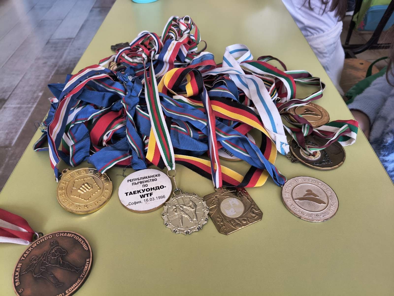 Г-жа Енева донесе със себе си малка част от своите медали, които предизвикаха истински възторг сред децата.