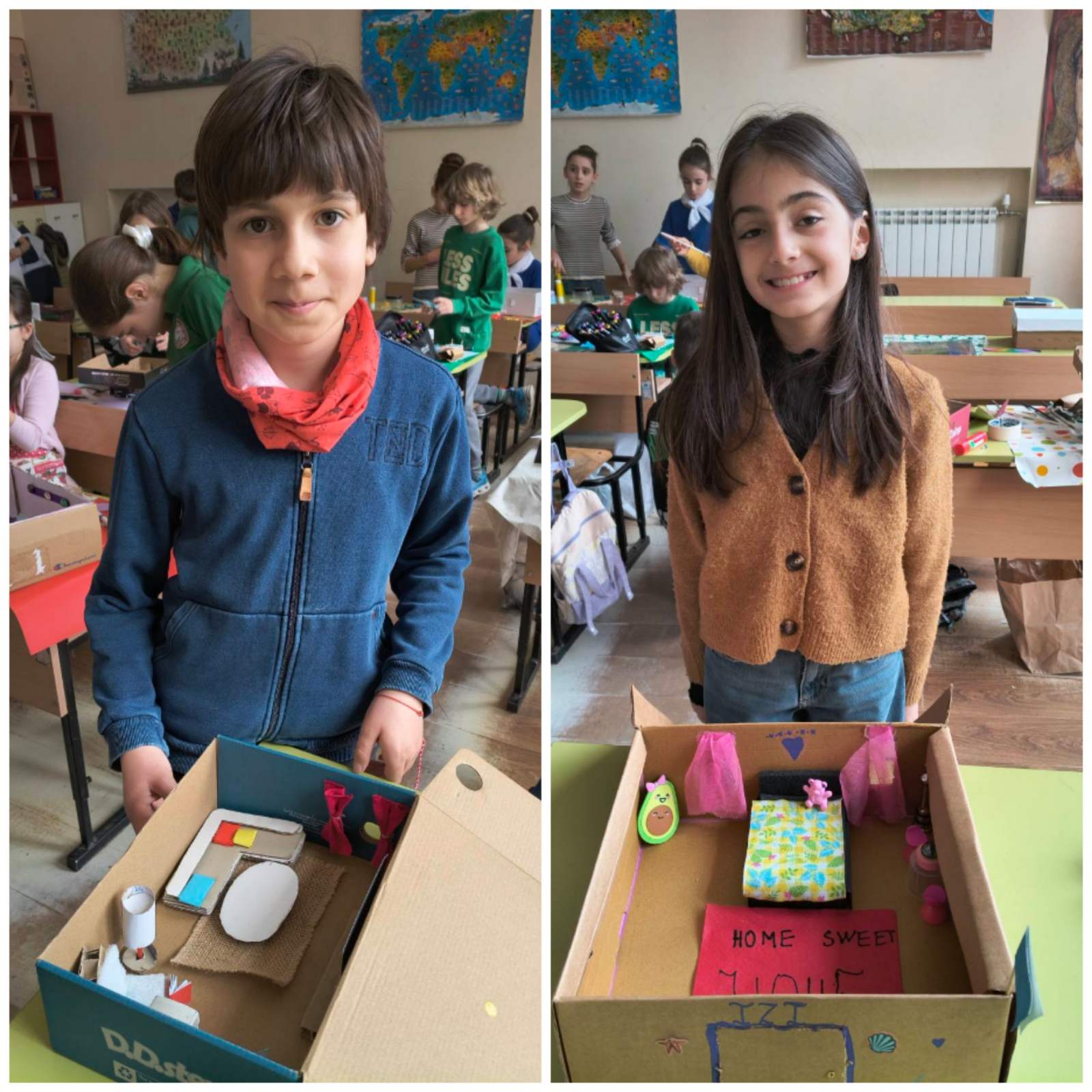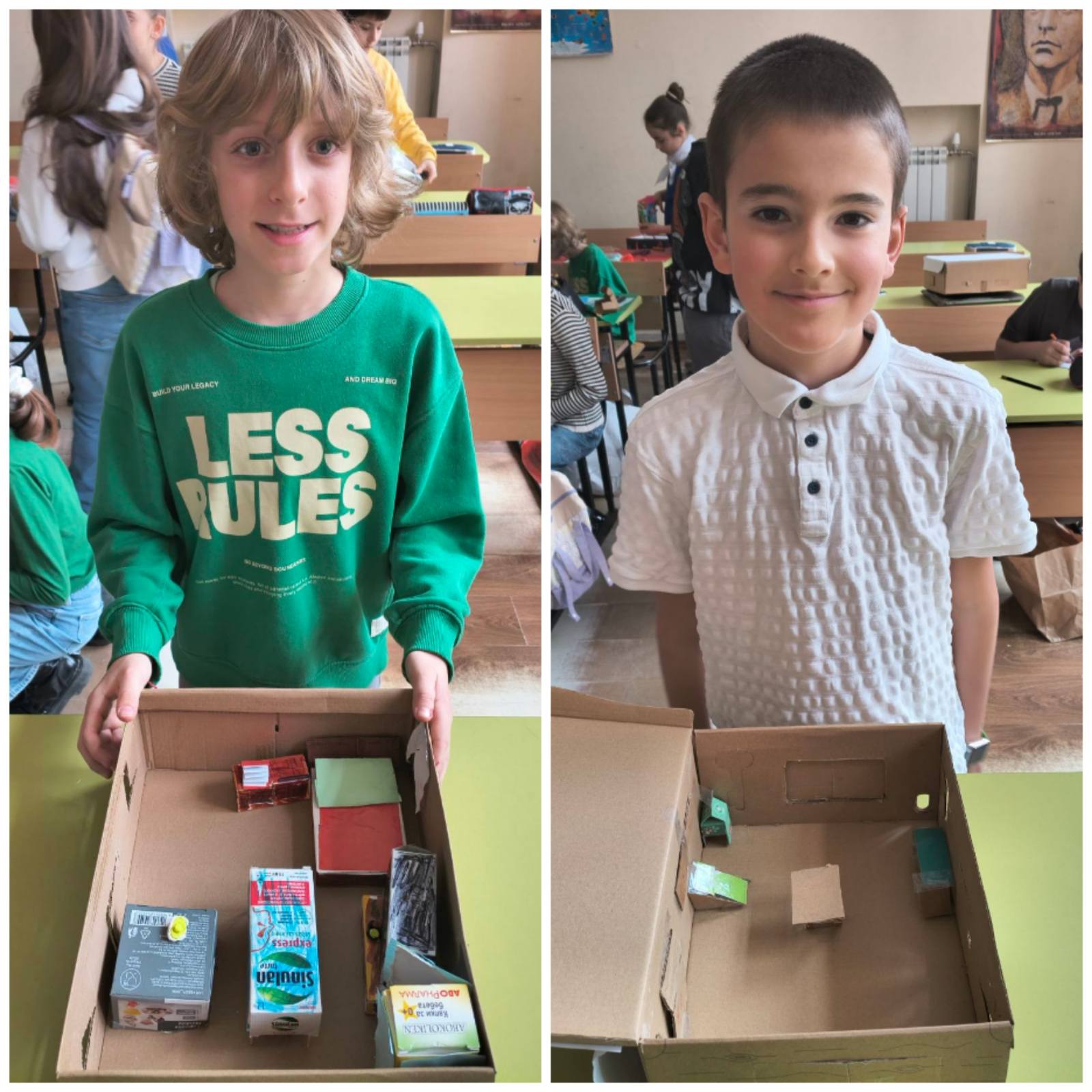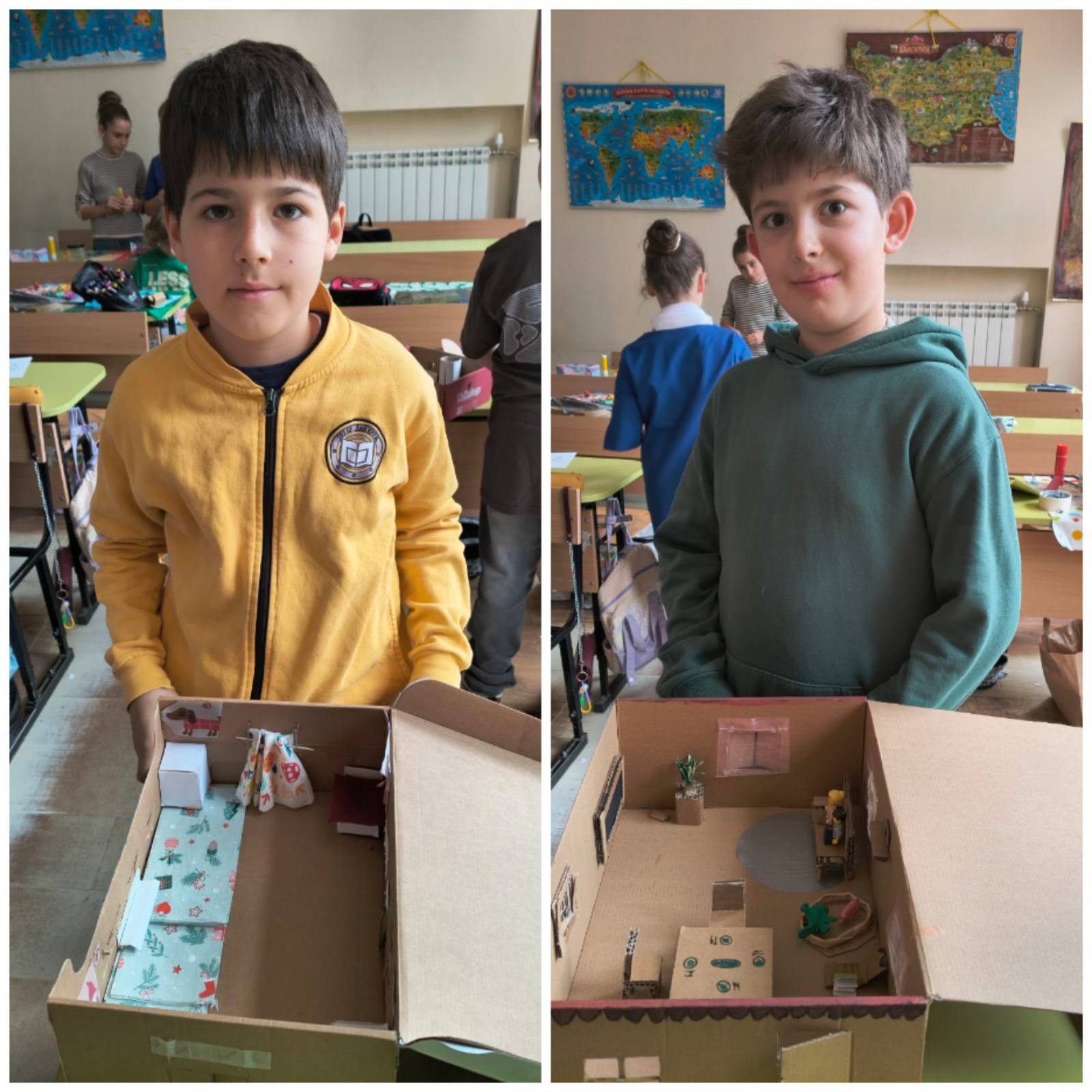 С темата „Геометрия около нас“ учениците създадоха впечатляващи макети – мебели, стаи и красиви книгоразделители.