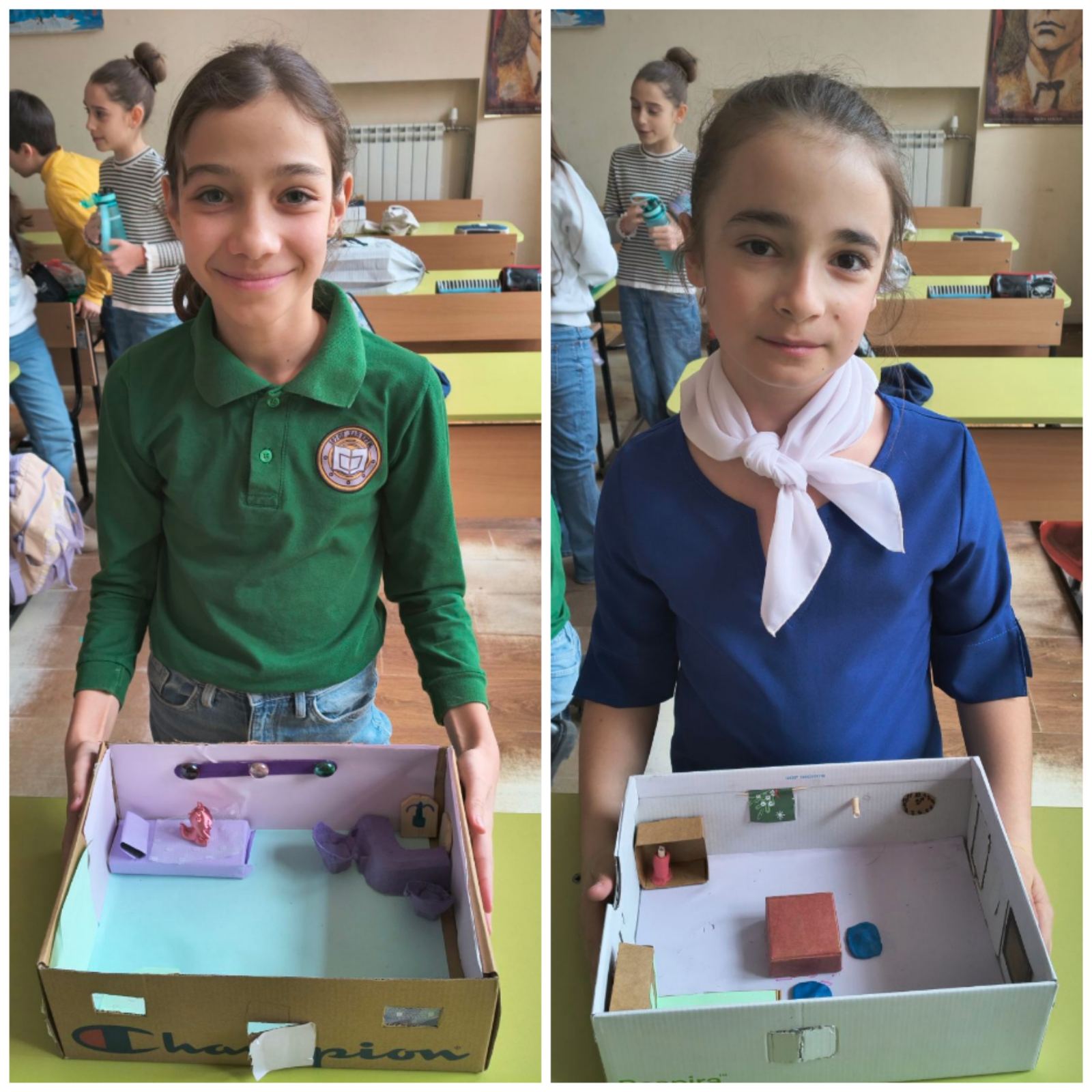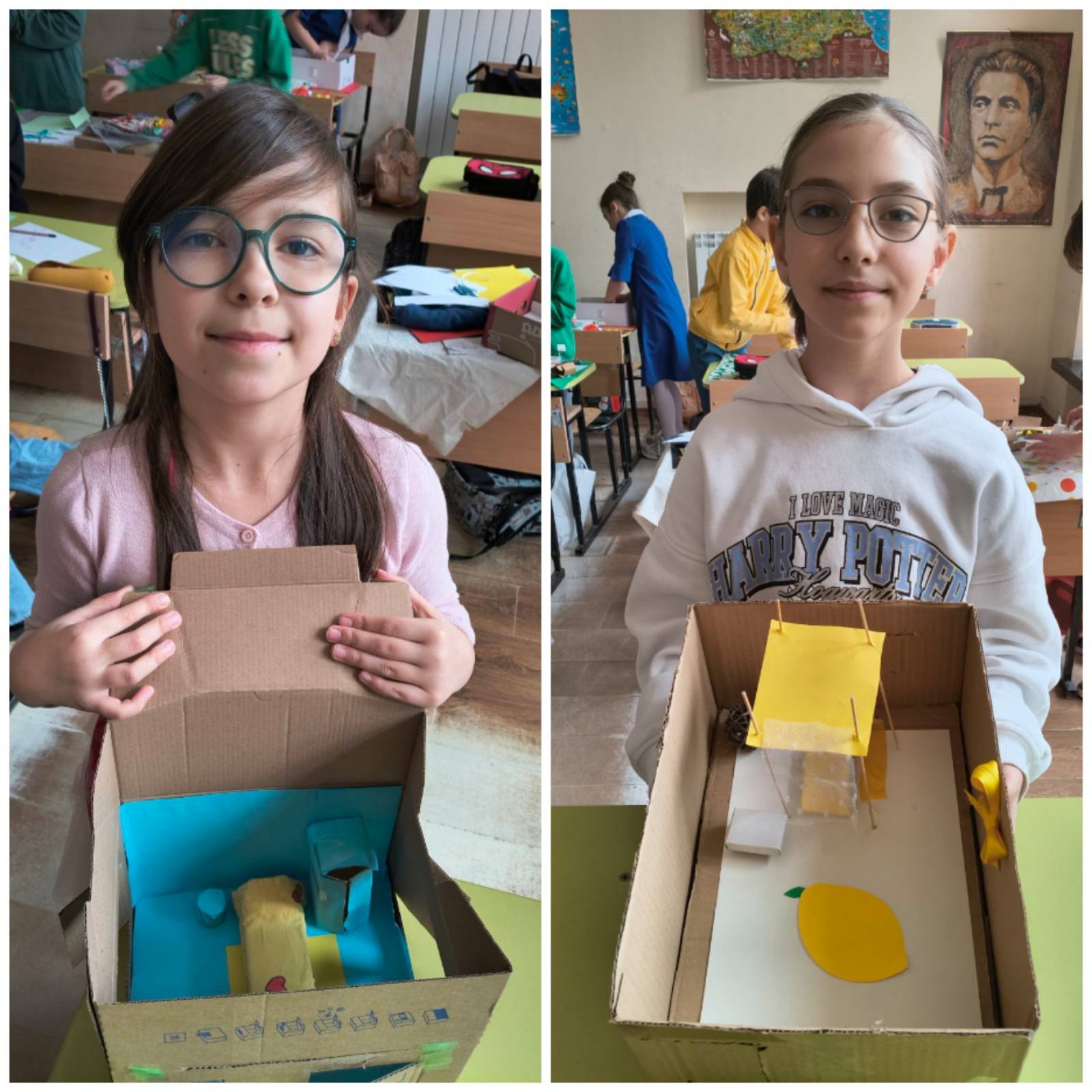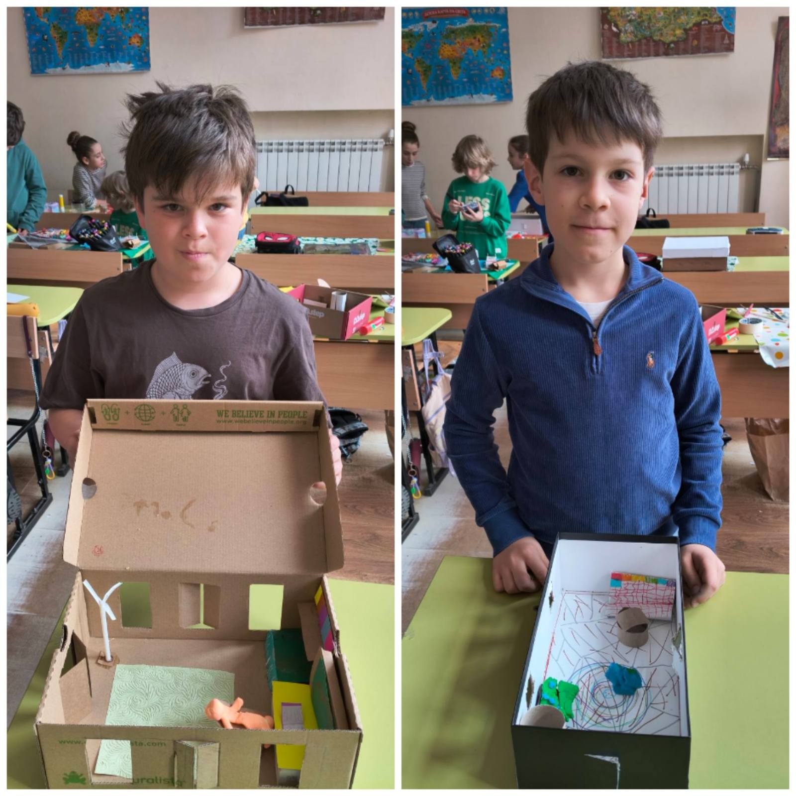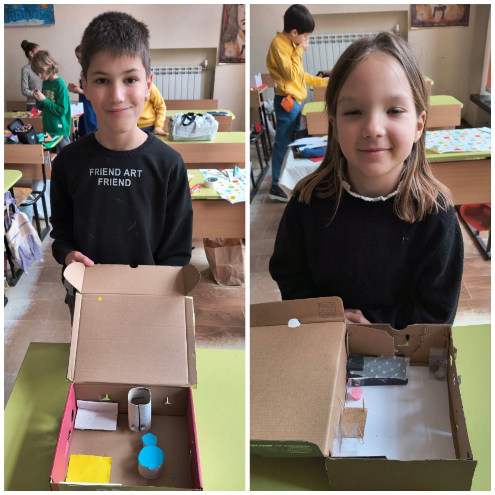 С темата „Геометрия около нас“ учениците създадоха впечатляващи макети – мебели, стаи и красиви книгоразделители.