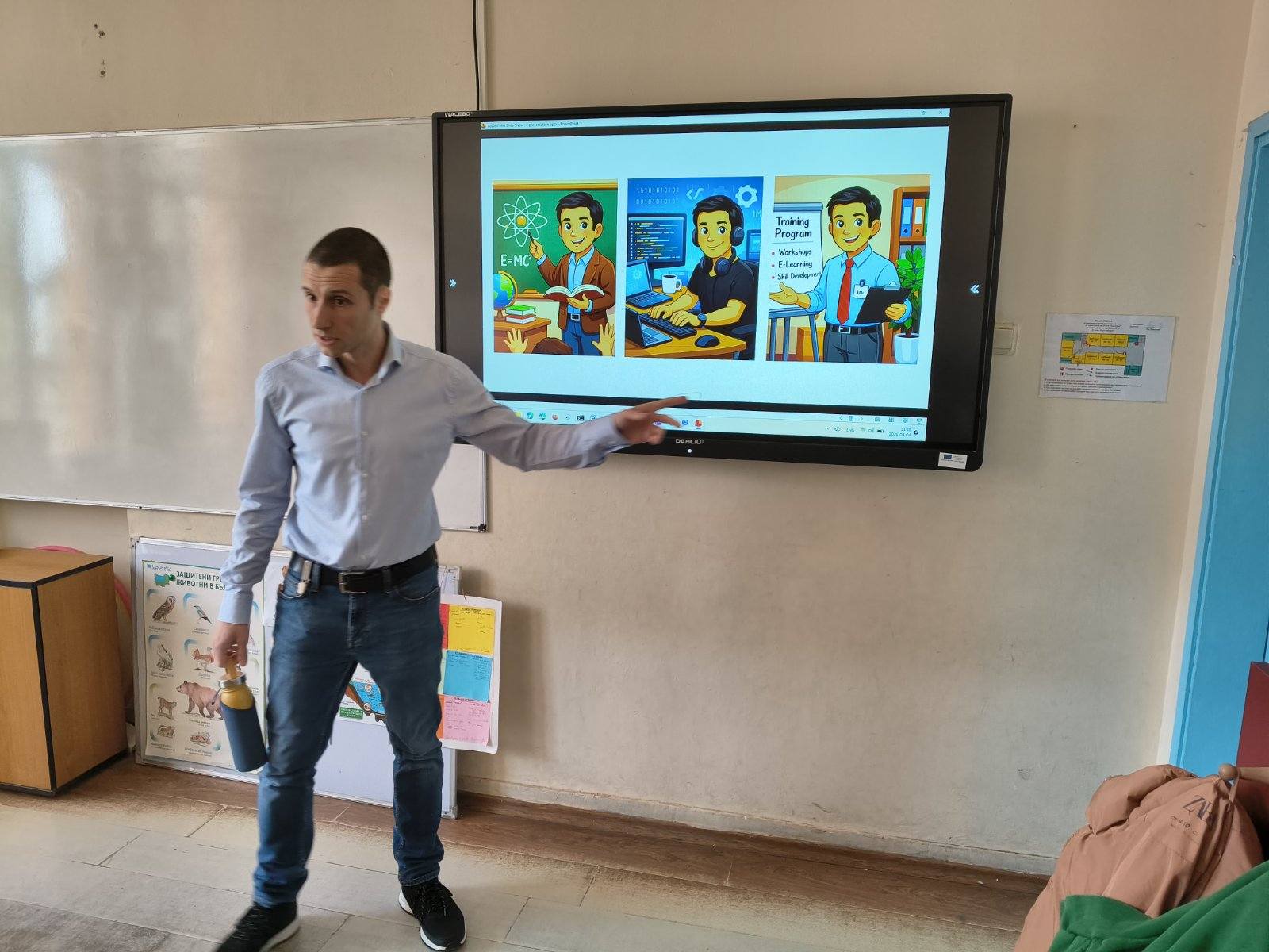 Той запозна учениците със значението и приложението на компютърните науки в съвременния свят. Срещата премина неусетно – с много любопитни въпроси, интересни примери и вдъхновяващи истории. Децата научиха колко разнообразни възможности предлагат компютърните науки и колко важно е да се учи упорито, с постоянство и желание.